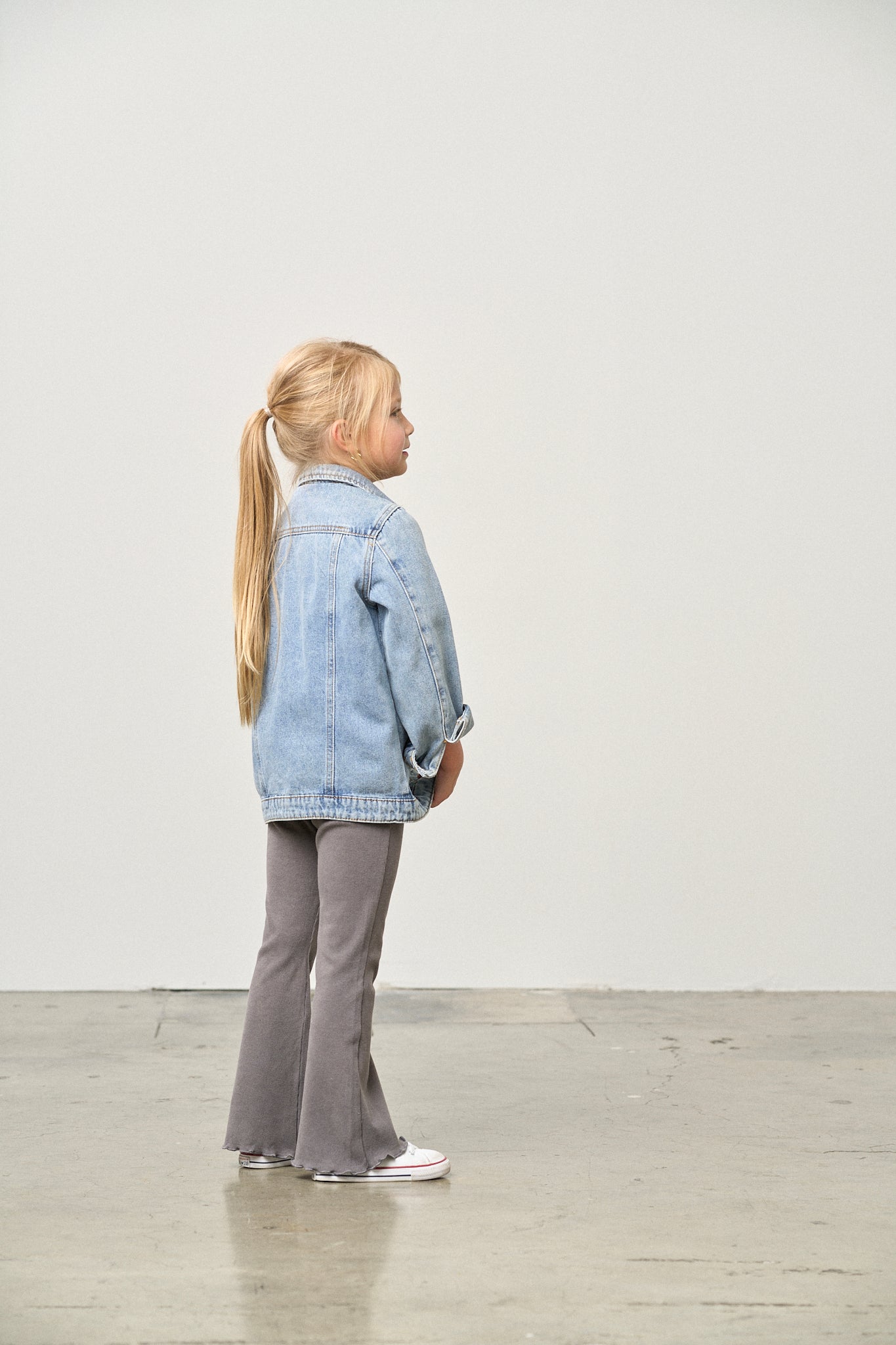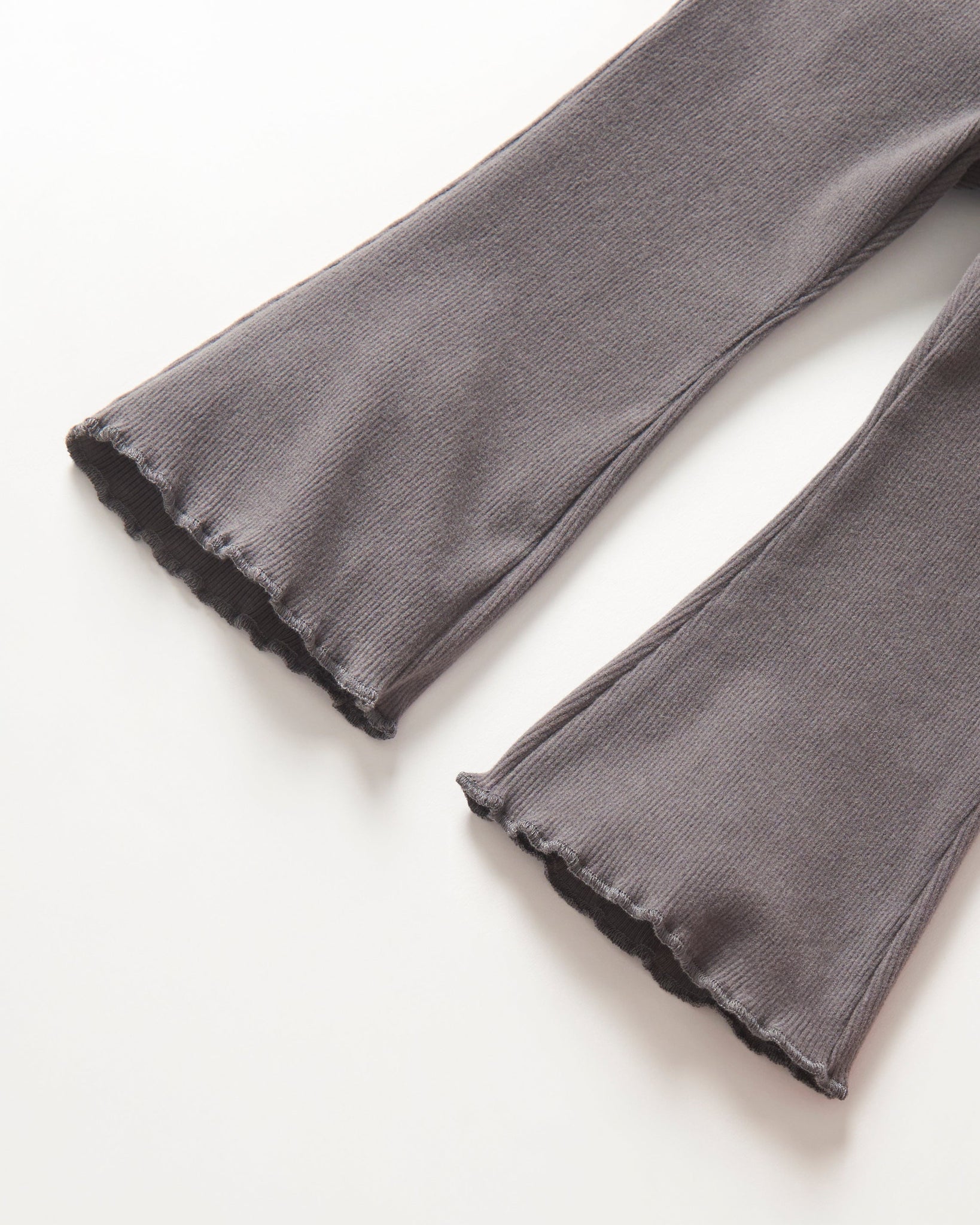 A modern staple made for comfort and style. Crafted from our soft brushed ribbed fabric in a cool Graphite hue, these flare pants move with your little one all day long. The ribbed elastic waistband keeps the fit easy and snug, while the scalloped flare hem adds just the right touch of detail. Effortless, comfy, and made to pair with anything.