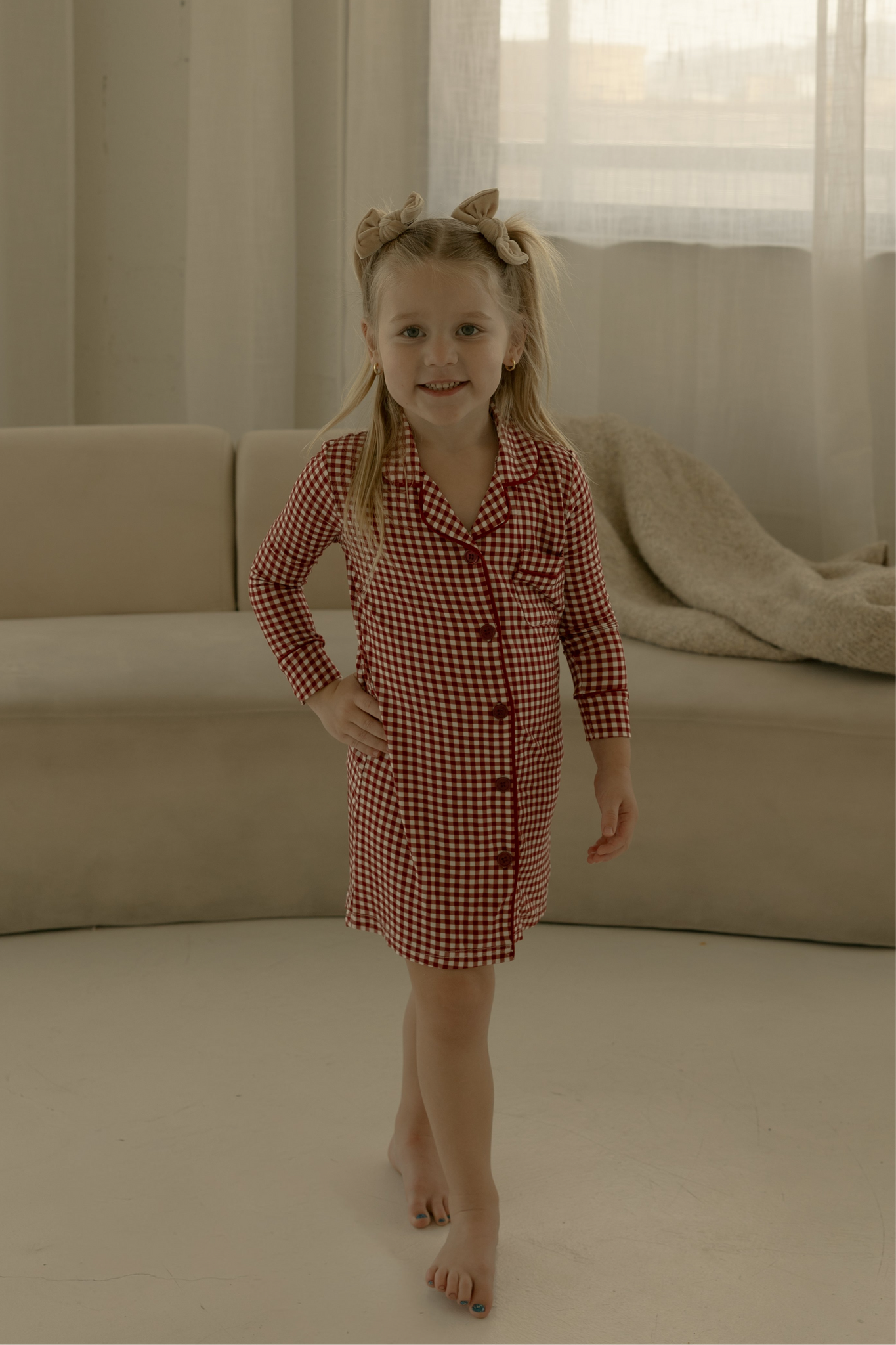 Our sleeping dress now available in toddler sizes! Featuring functional front buttons for easy wear and a stylish high-low cut at the hem, this dress offers both full coverage and a flattering silhouette. Made from soft, breathable bamboo fabric, it’s perfect for a restful night’s sleep. Also available in an adult version for the perfect matching moment.