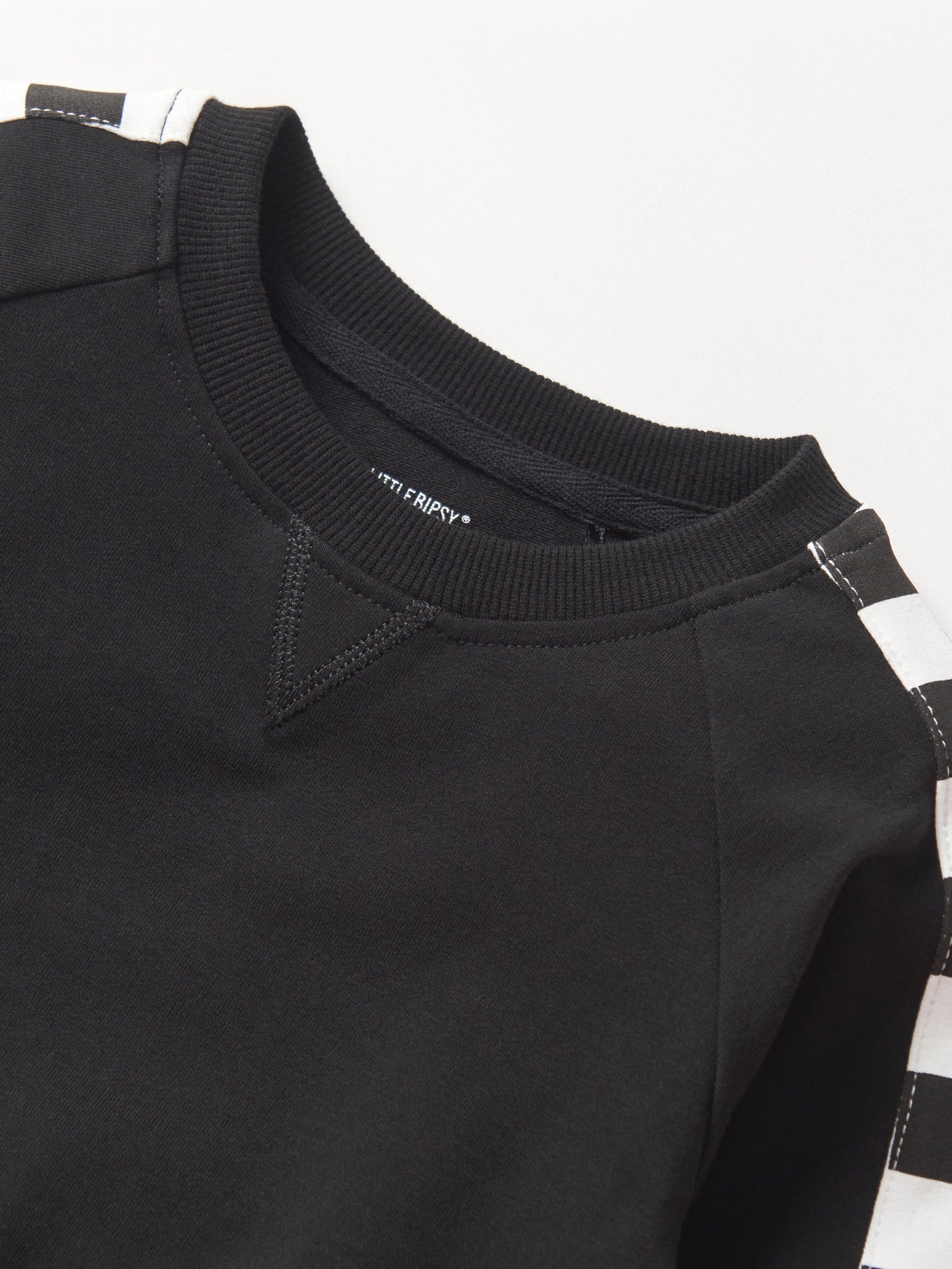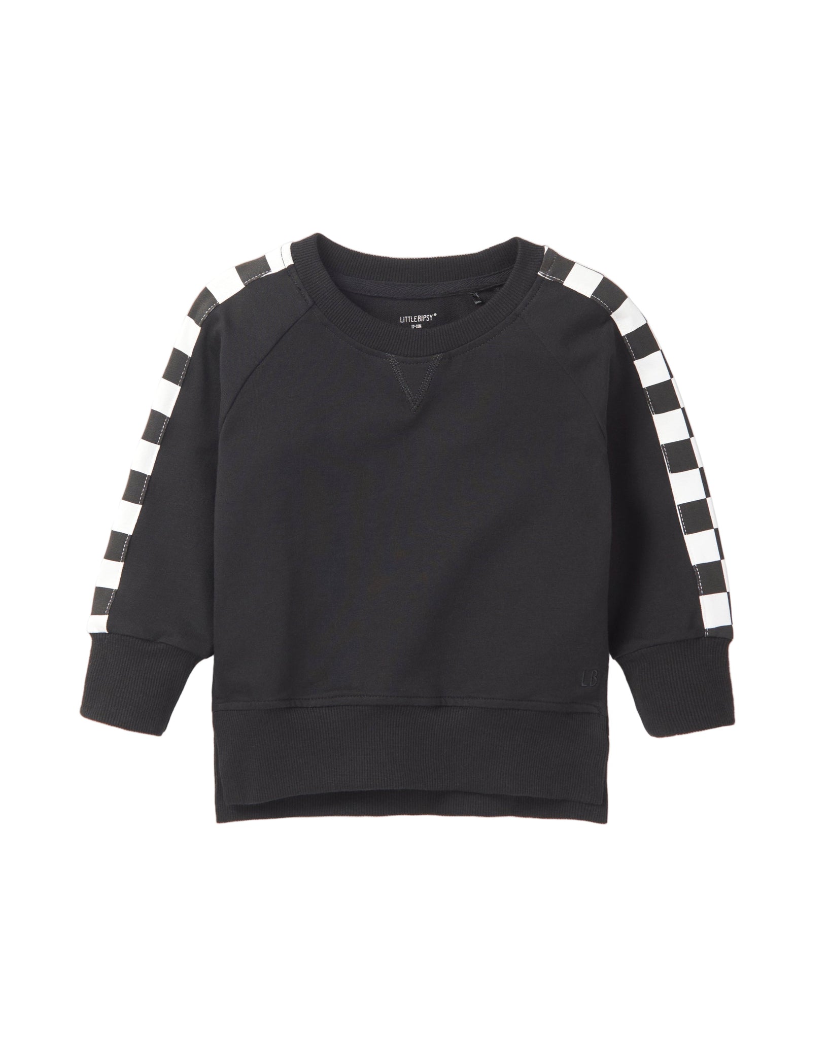 Designed with a ribbed neckline, cuffs, and hem for a clean finish, plus rollable cinched cuffs so you can style it your way. Side slits keep movement easy, while the stripe checkered detail down the sleeves adds a playful, standout twist. Finished with our signature embroidered “LB,” this pullover is ready for school, play, and everything in between.